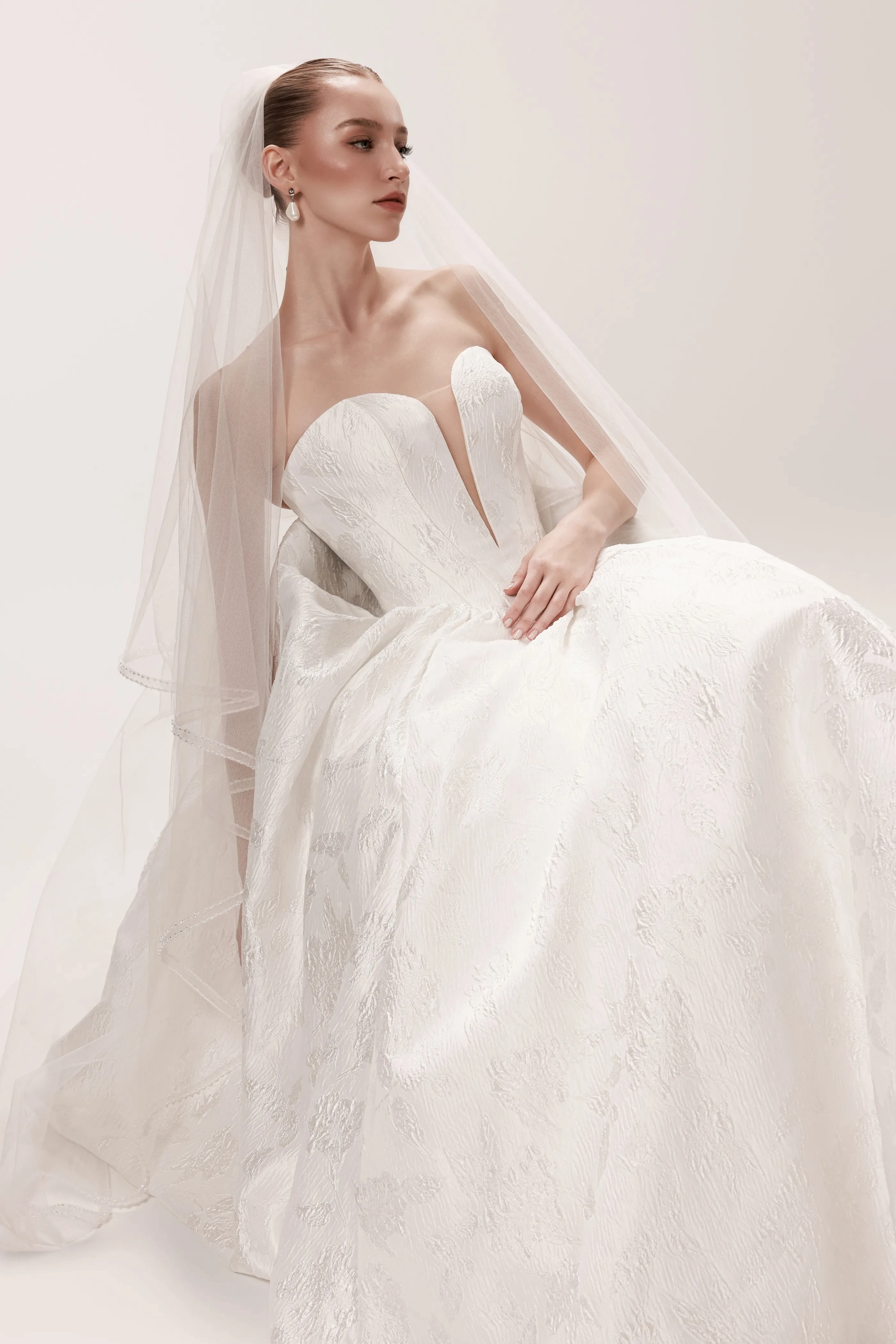 Not all bridal gowns are available in the boutique, if you are interested in any specific gown - feel free to contact us or book an appointment!