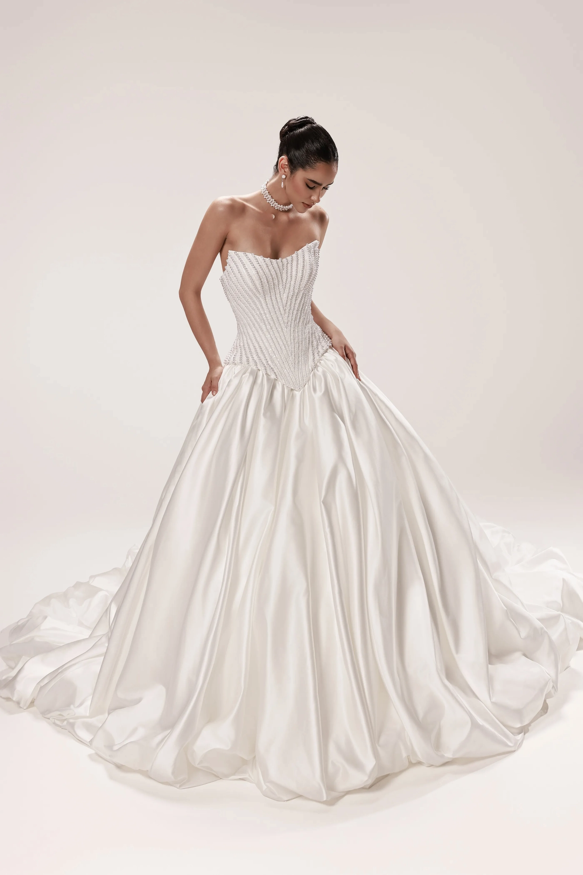 Not all bridal gowns are available in the boutique, if you are interested in any specific gown - feel free to contact us or book an appointment!